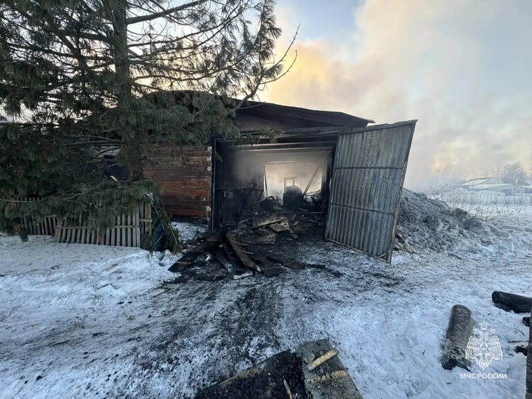 Уточняется, что возгорание зафиксировано на улице Покрышкина. В результате обгорела обрешетка крыши жилого дома, повреждены стены крытого двора и надворные постройки. Площадь пожара составила 223 квадратных метра. Погибли 10 кур, восемь уток и собака.
