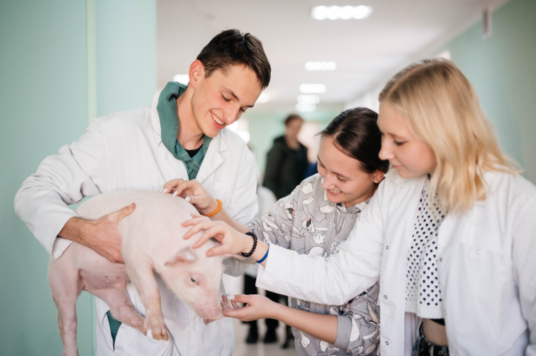 Другой важной частью дней СПО стал выезд студентов колледжа на производственные площадки компании — свинокомплекс и птицефабрику. Здесь будущие аграрии приняли участие в расселении цыплят, помогли приготовить йогурт для поросят и провели татуирование свинок.